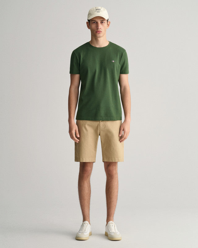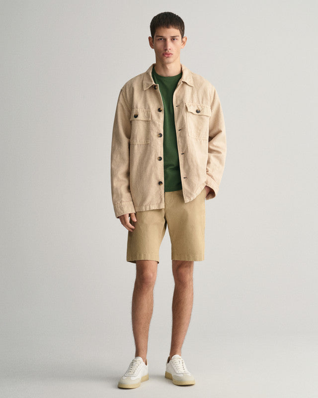 Details include front slanted pockets, back buttoned welt pockets and corozo buttons. With a smart chino look and a sporty drawstring waist, these shorts are best paired with a tee or piqué for an easygoing warm-weather look.
