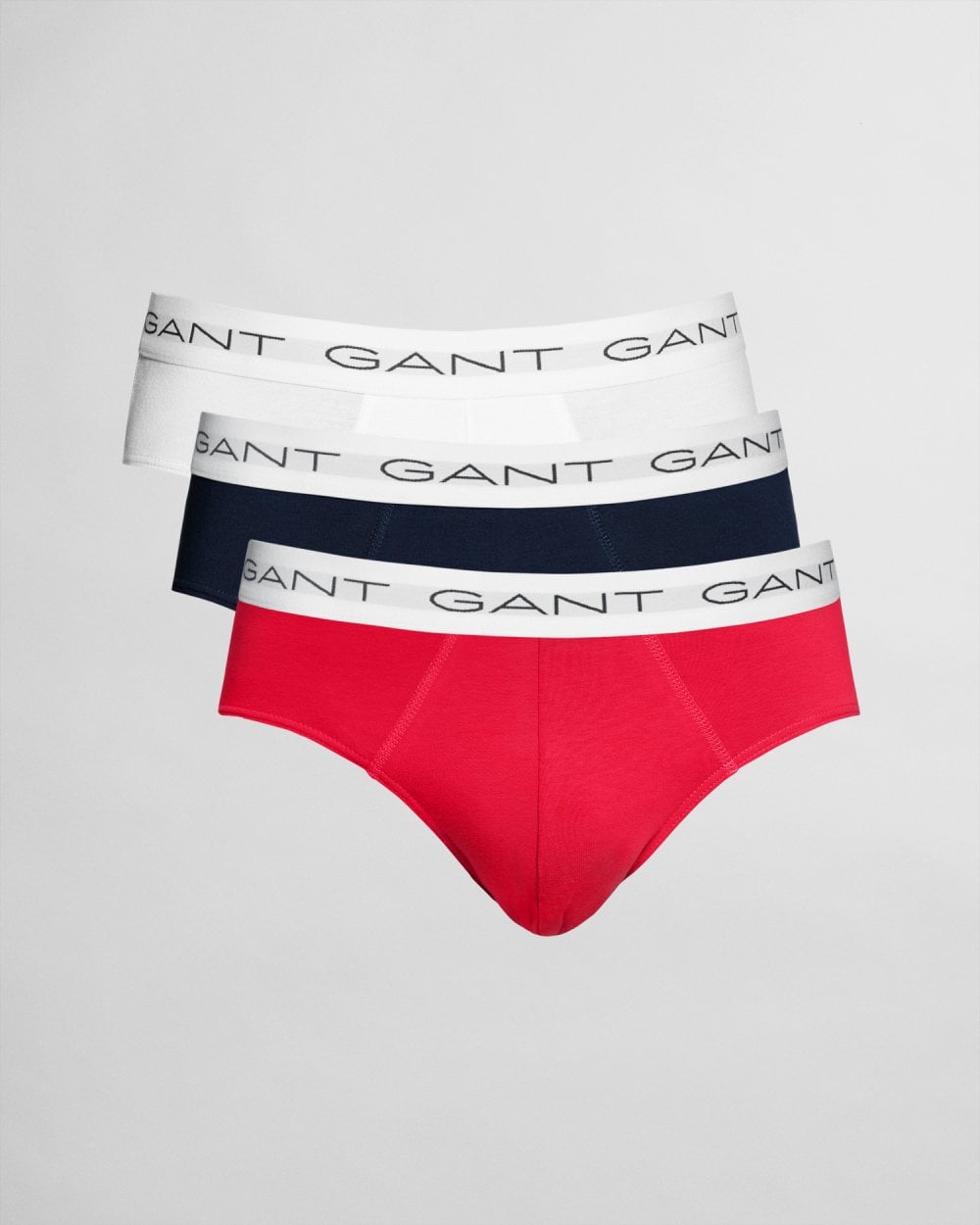 The 3-Pack Briefs are crafted in cotton stretch jersey with a close fit, cut-out leg opening, and a normal waist. The trunks come in solid basic colors featuring a jacquard-knitted elastic waistband with repeated GANT logotypes.