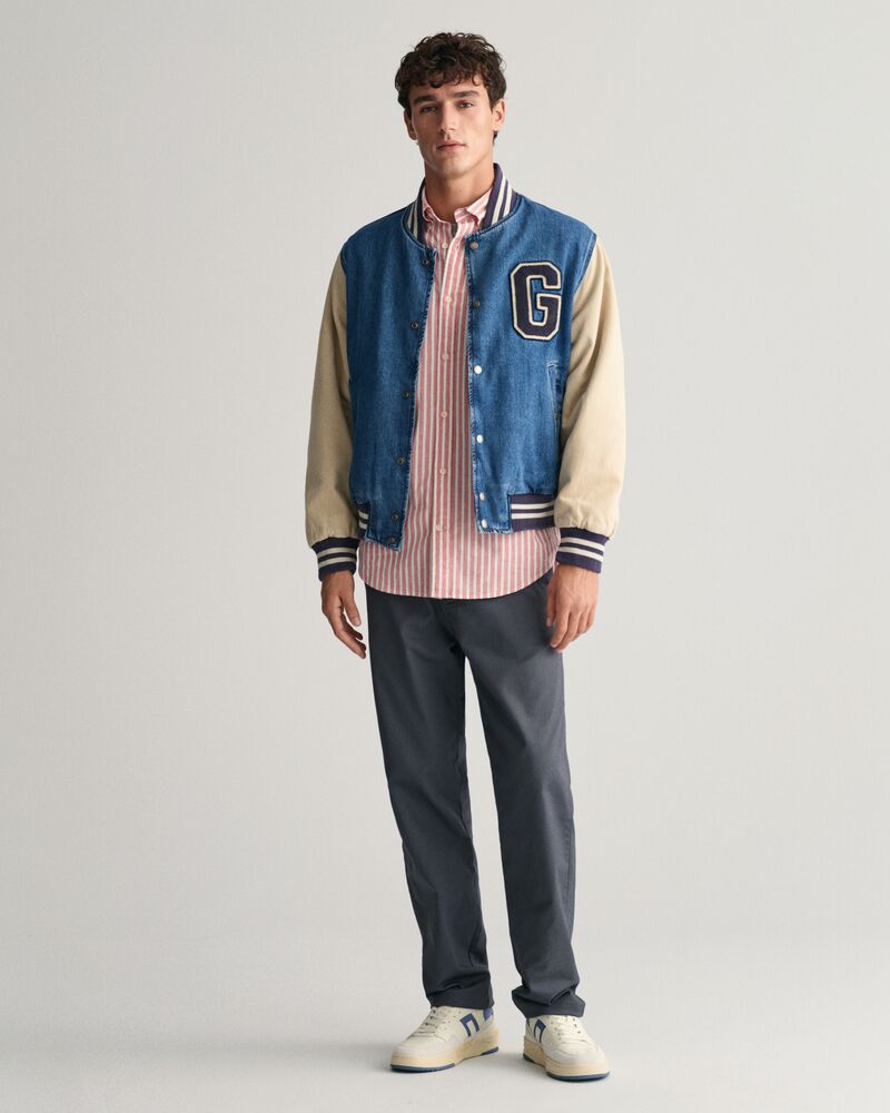 Made of a crisp linen-cotton blend, this regular fit shirt is light, breathable and airy. Patterned with yarn-dyed stripes, it has a button-down collar, curved hem, a chest pocket with shield embroidery and a box pleat and locker loop at the back.