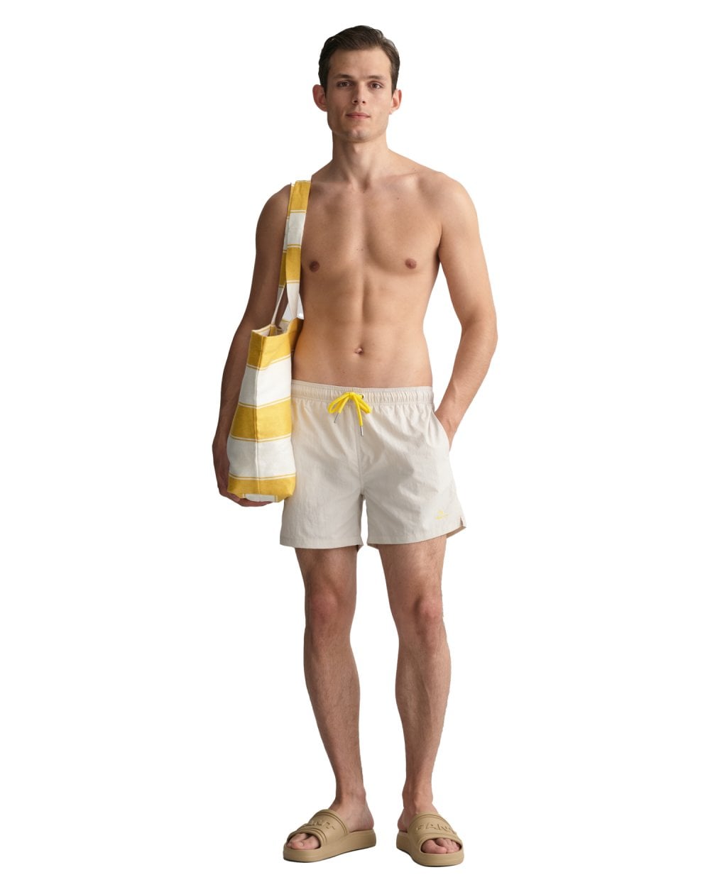 The Classic Fit Swim Shorts sport a shorter length and feature an elastic waistband with a contrast-color drawstring. These easy-to-wear and classic swim shorts have a mesh inner pant and our signature GANT Diamond G embroidery at the left bottom leg.