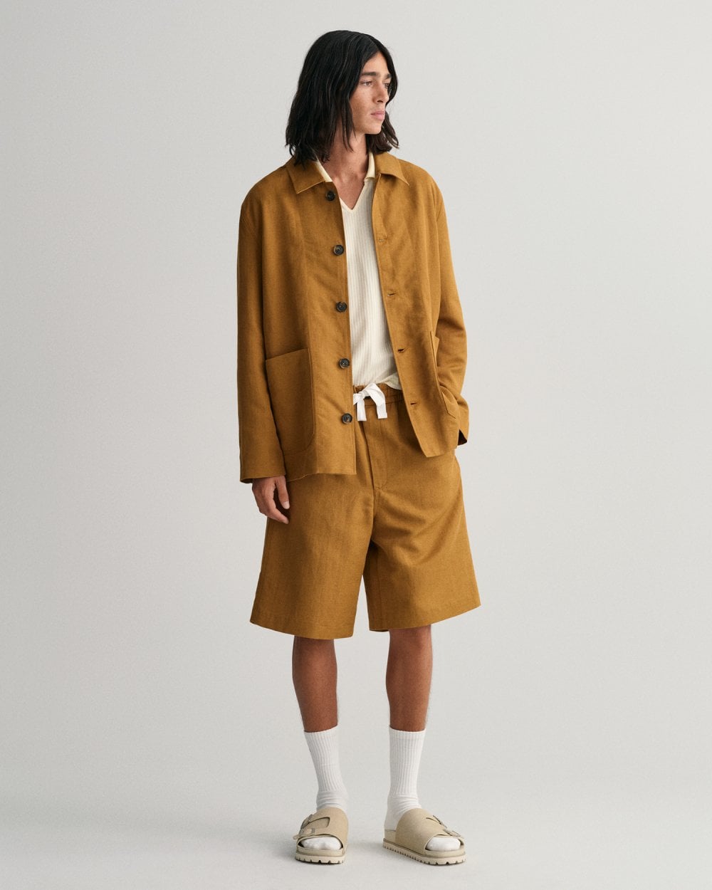 This workwear-inspired jacket is crafted in an Italian cotton linen blend with a twill weave design. It features 5-button closure and visible 2-needle topstitching for an unconstructed look. Wear it with with everything from a graphic t-shirt to knitwear alike.