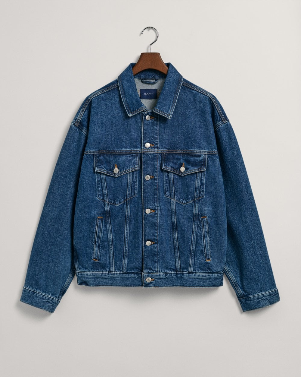 As iconic as it is versatile, this denim jacket is made in a mid-blue wash that goes with just about anything. The fit is relaxed and finishes just above the hip with an adjustable tab on the hem for a customizable fit. It is accented with denim shank buttons, twin needle stitching, chest and side seam pockets and an embroidered locker loop at the back.