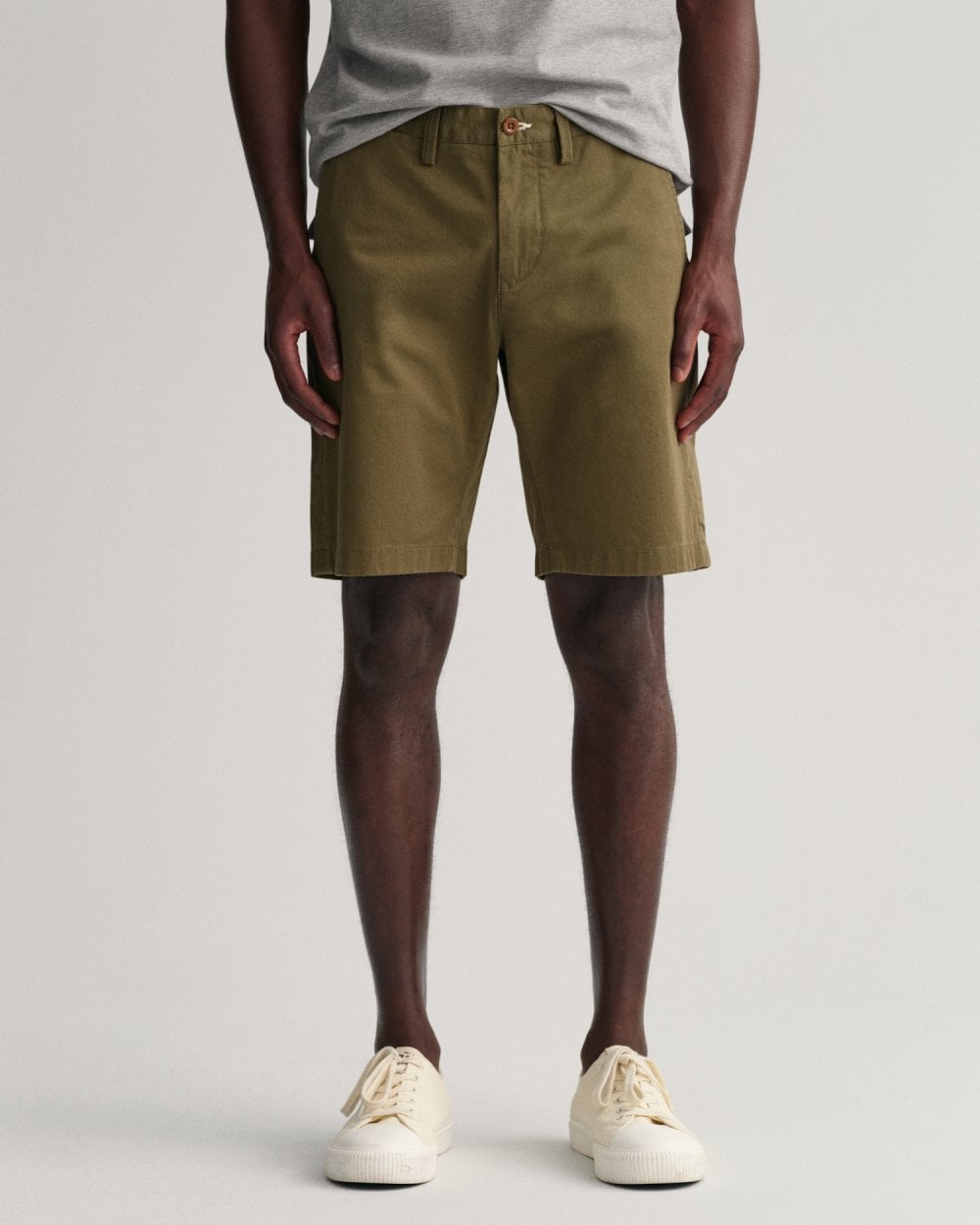 Crafted in a stretch cotton blend, our Hallden Slim Fit Twill Shorts fit snugly over the hips and are available in a number of muted, neutral colors. They feature a dark blue chambray lining with cream accents, branded buttons and a coin pocket on the front right side. Pair with a lightweight button-down shirt and sneakers for the ultimate summer look.