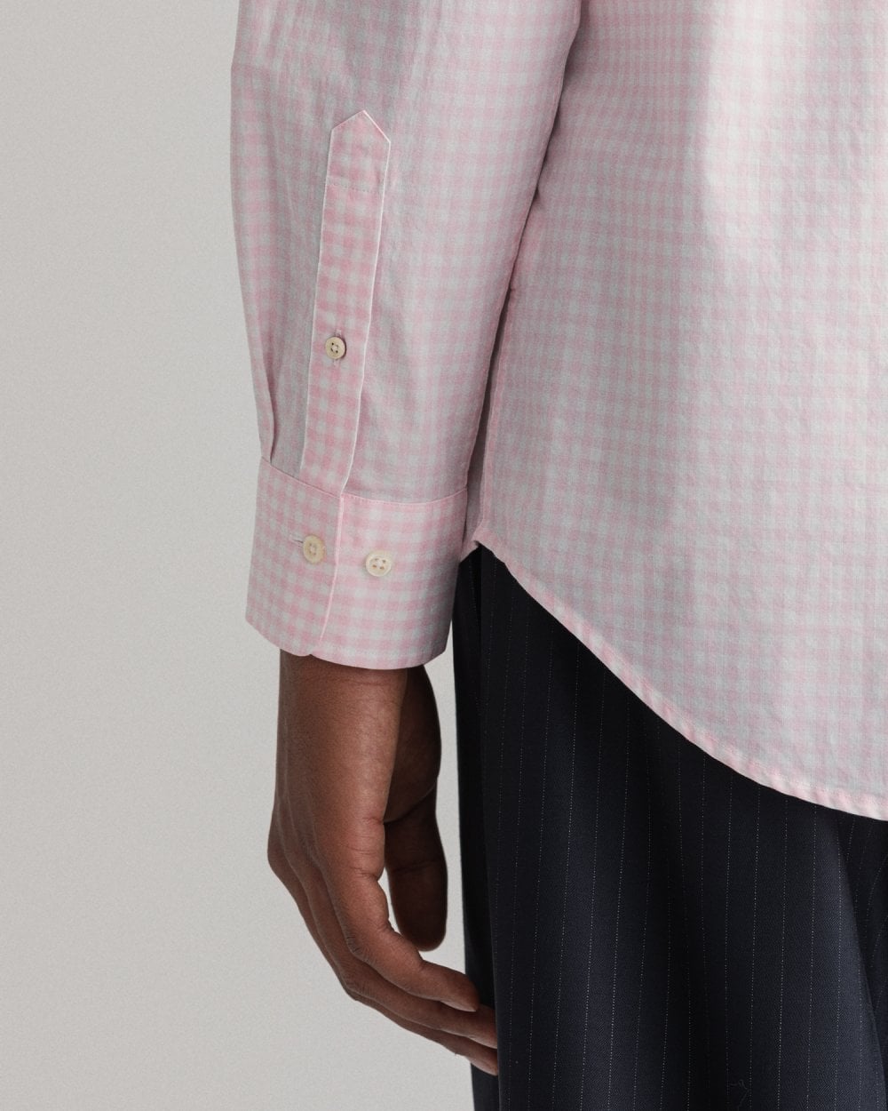 Crafted in cotton broadcloth with a gingham pattern, this regular fit shirt has our signature button-down collar, logo embroidery at the chest, and locker loop and boxpleat at the back.