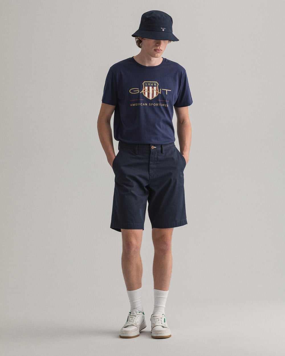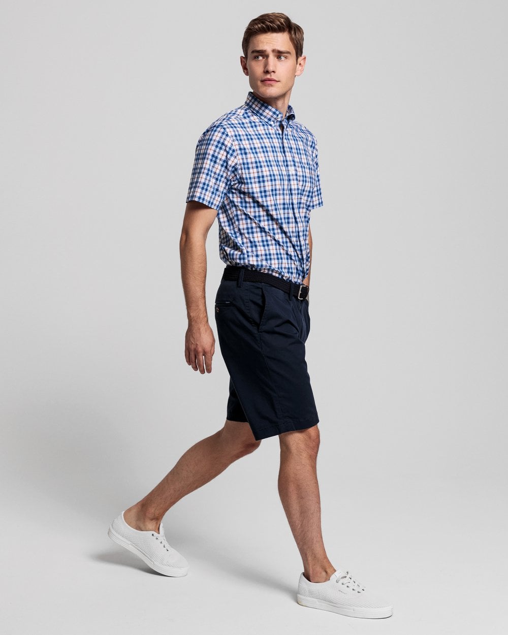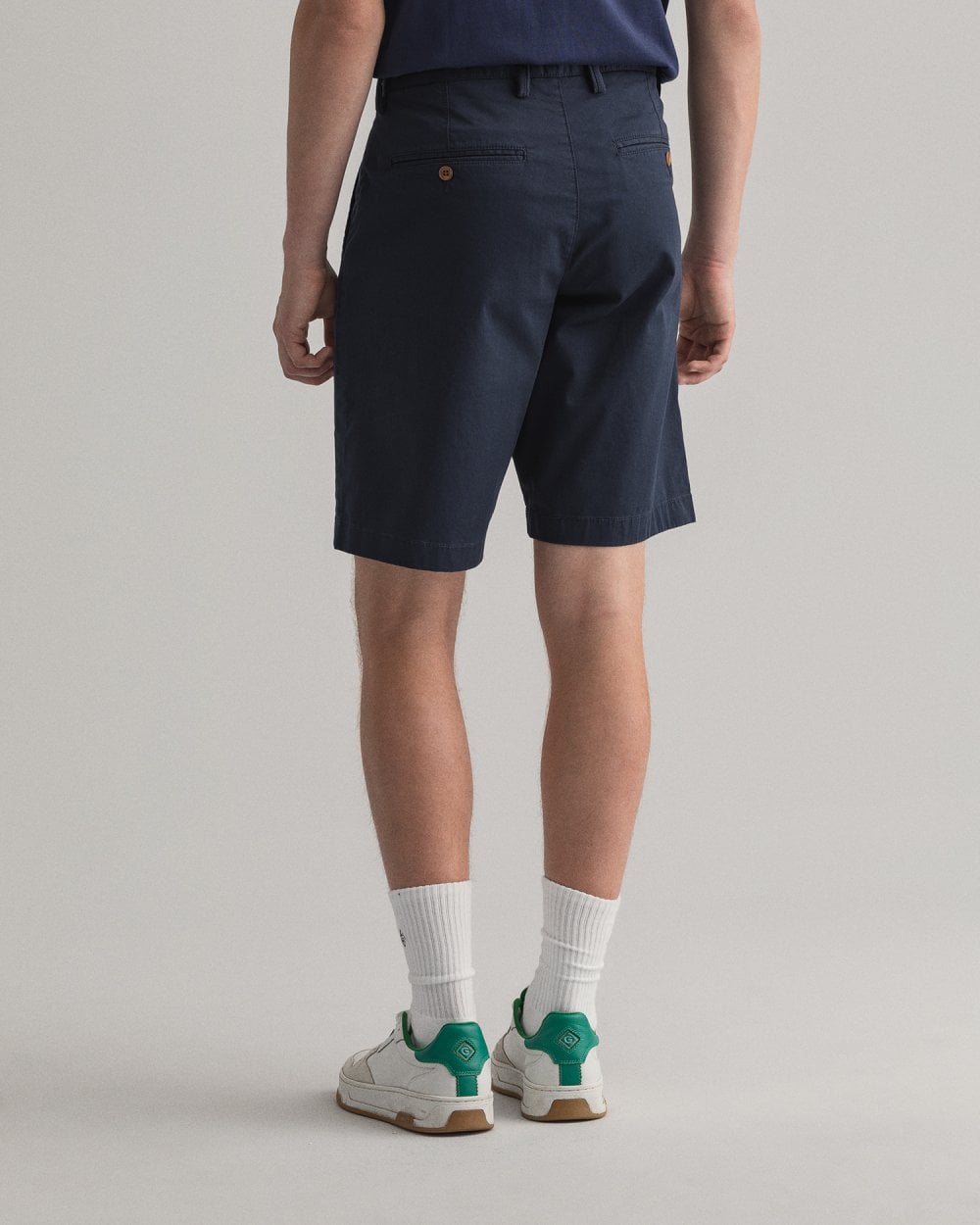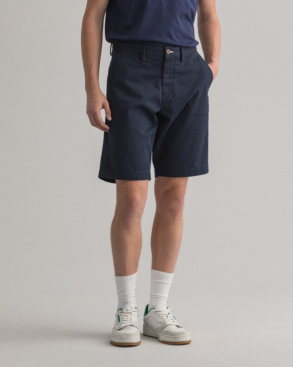 Our Relaxed Fit Twill Shorts, in a stretch cotton-blend, feature our relaxed fit (normal on the waist, relaxed on the leg). These crisp chino shorts have a dark blue chambray lining with cream herringbone accents, as a nod to our proud shirtmaking heritage, as well as covered side seams inside the bottom leg for a preppy look when you roll up your pant leg.