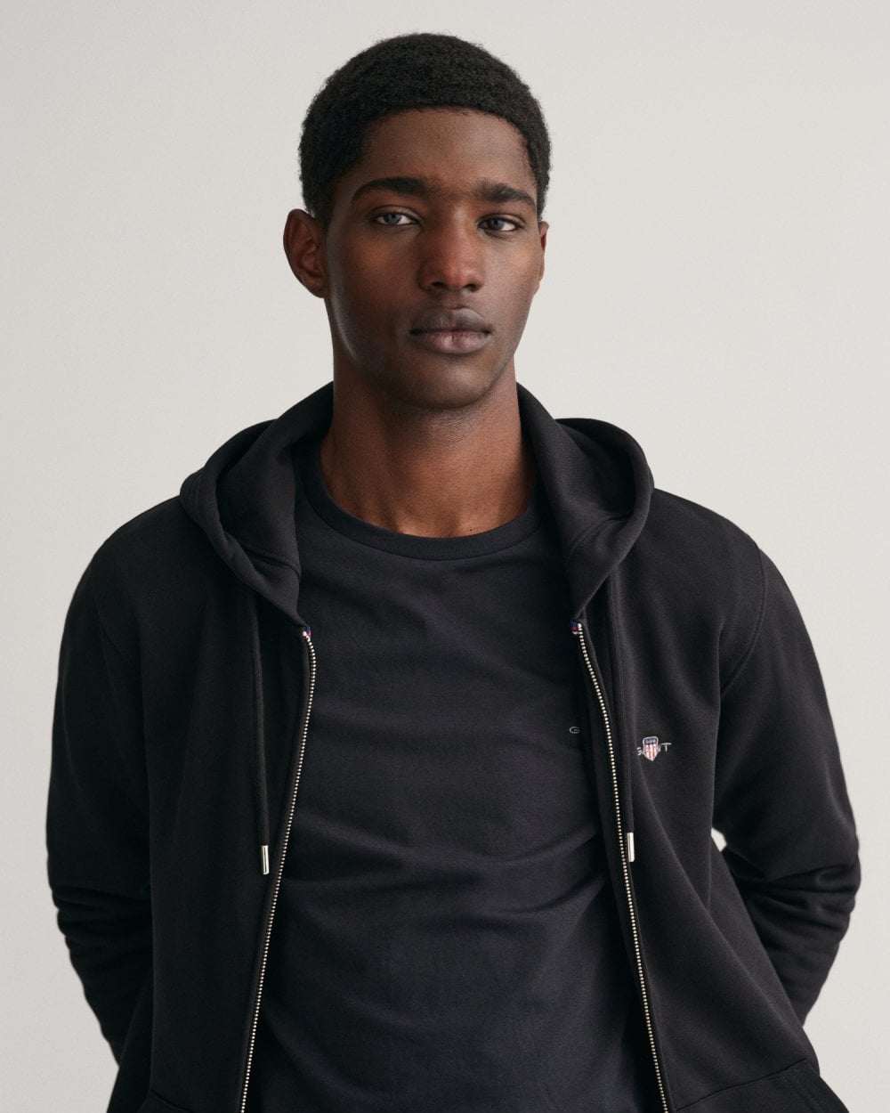Featuring a small-scale shield graphic embroidered at the chest, this hoodie features full-zip closure and a kangaroo pocket at the front. Pair it with sweatpants for lounging in or with jeans for a casual day out.