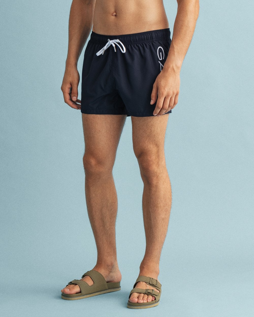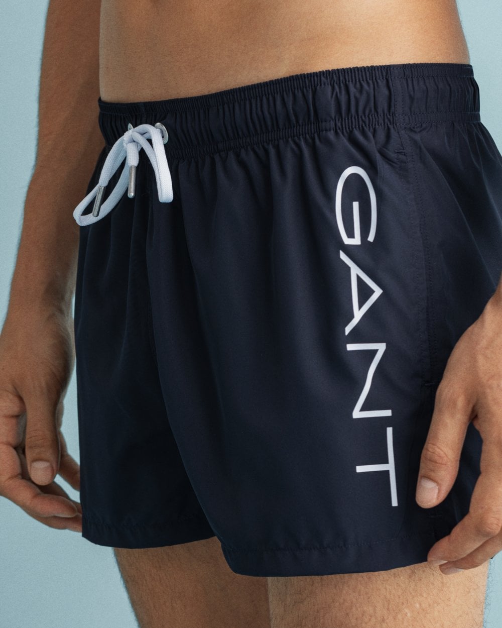 Crafted in recycled polyester, the Short Cut Logo Lightweight Swim Shorts sport a shorter length, an elastic waistband with a contrast-color drawstring, and a mesh inner pant. They also feature a white GANT logotype on the side for a bold, sporty look.