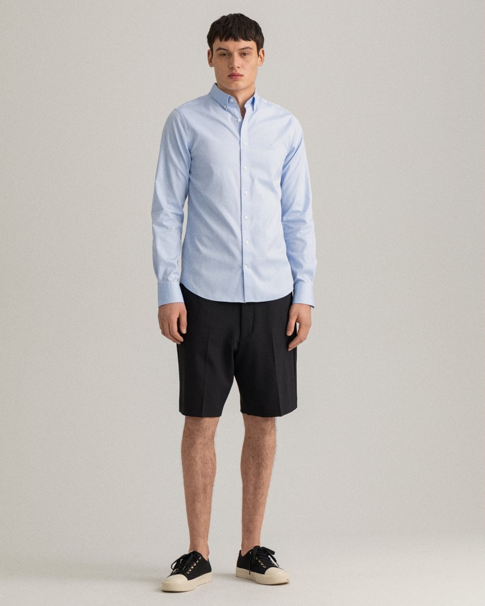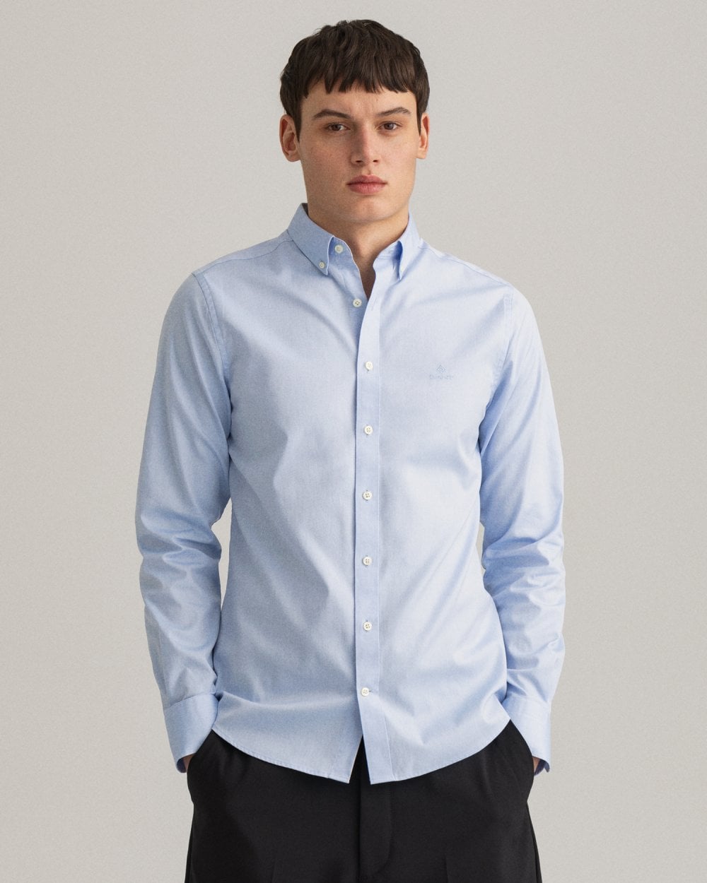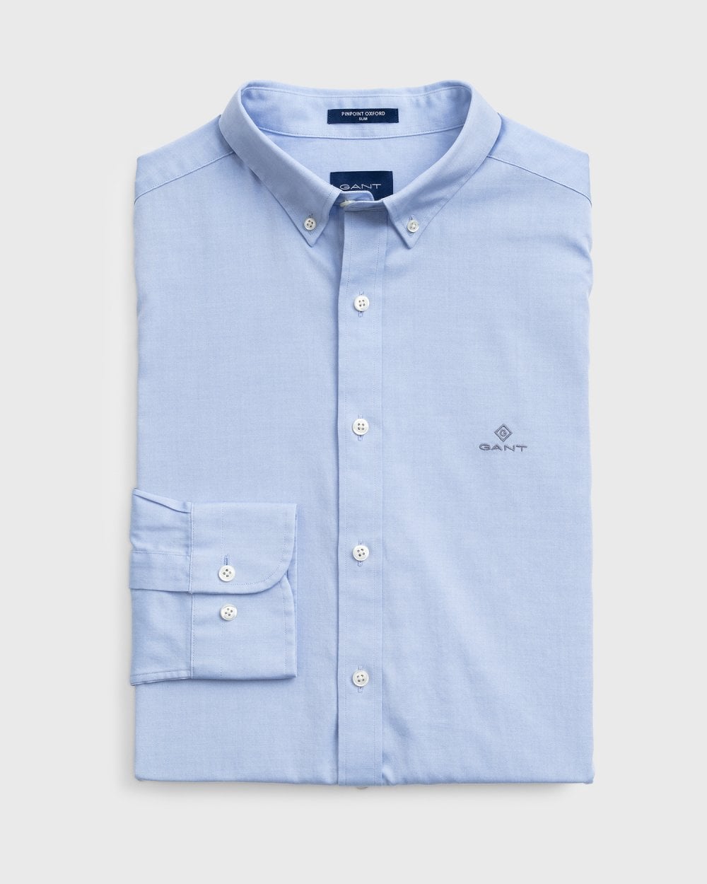 Crafted in a smooth pinpoint oxford cotton for a business casual look, this slim fit shirt features our signature locker loop at the back and Diamond G logo embroidered at the chest, with no pocket for a cleaner look.