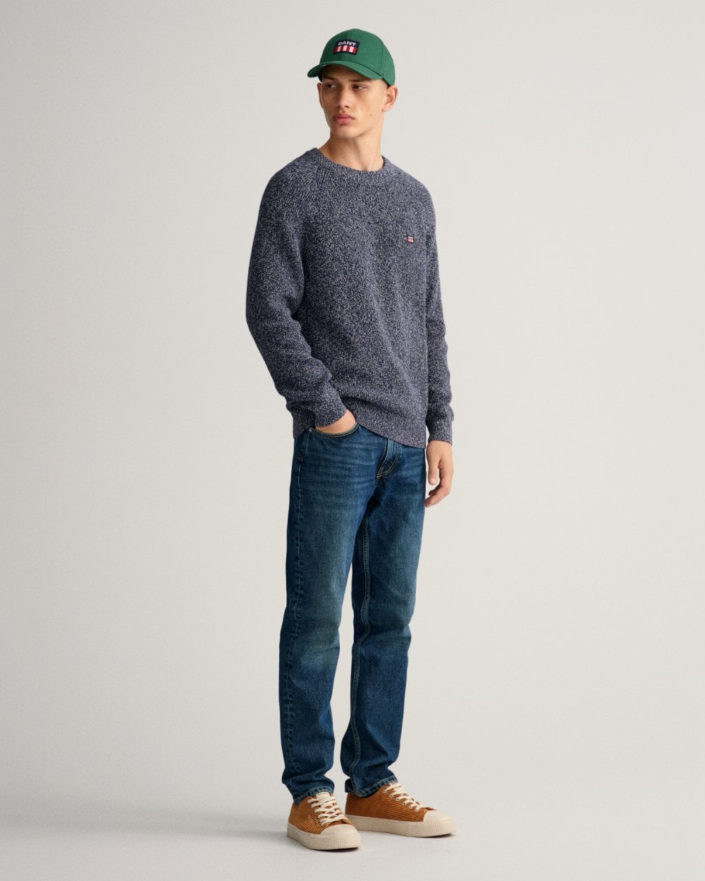 Knit with a multicolored twist yarn, this sweater has a richly textured effect elevating the understated design. Endlessly versatile, it features a classic crew neck design with raglan sleeves and a GANT logo badge at the chest.